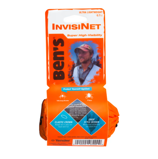 Block out biting insects without having to obstruct your view or wear bug spray with Ben's InvisiNet Head Net, one of the best visibility bug nets available. Knitted 20-denier fibers with 1mm rhombus-shaped pore size make it nearly invisible when wearing. Drop-neck design extends beyond your neck, past your shirt's or jacket's neckline for maximum coverage while promoting ventilation. Ideal for wear when hiking, fishing, or gardening, the Ben's InvisiNet has a roomy fit with an elasticized crown that stays in place on your head or favorite hat. It weighs only .7 oz. and comes in a pull-string sack for easy packing and carry.