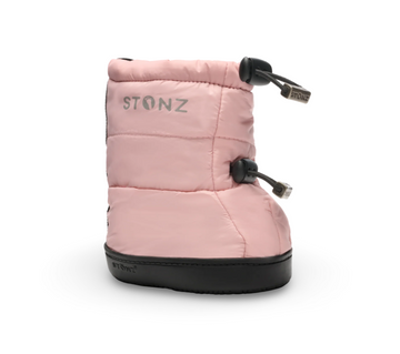 Perfect for your little explorer out in cold weather, Stonz Puffer Toddler Booties keep their feet dry & warm even in the middle of winter. The Stonz Puffer Toddler Booties use 3M thinsulate to keep them cozy in temperatures as low as -20ºC. Easy to get on and off for any impromptu backyard play session, these soft-sole non-slip shoes are perfect for early walkers that still have wobbly steps. Warm without being bulky, these versatile puffer booties were made for kids (and parents) on the go: lightweight for toting around in your diaper bag and with an extra-wide opening that easily covers shoes or liners. Got a wiggly baby? Just secure with the toggle closure and you’re done: no amount of kicking and playing will get these off!