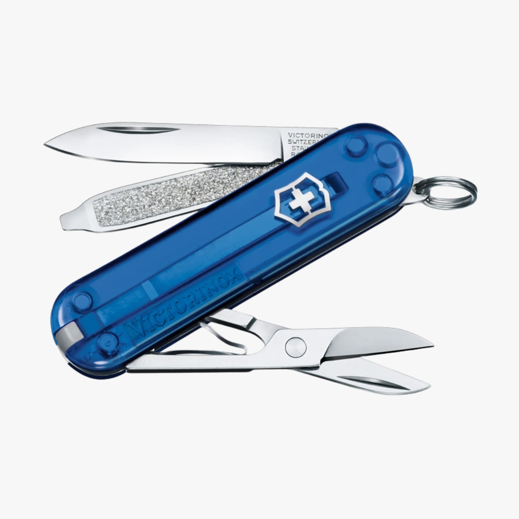 Blade, small / Scissors / Nail file | Screwdriver 2.5 mm / Key ring / Tweezers / Toothpick / Nail file / Screwdriver 2.5 mm