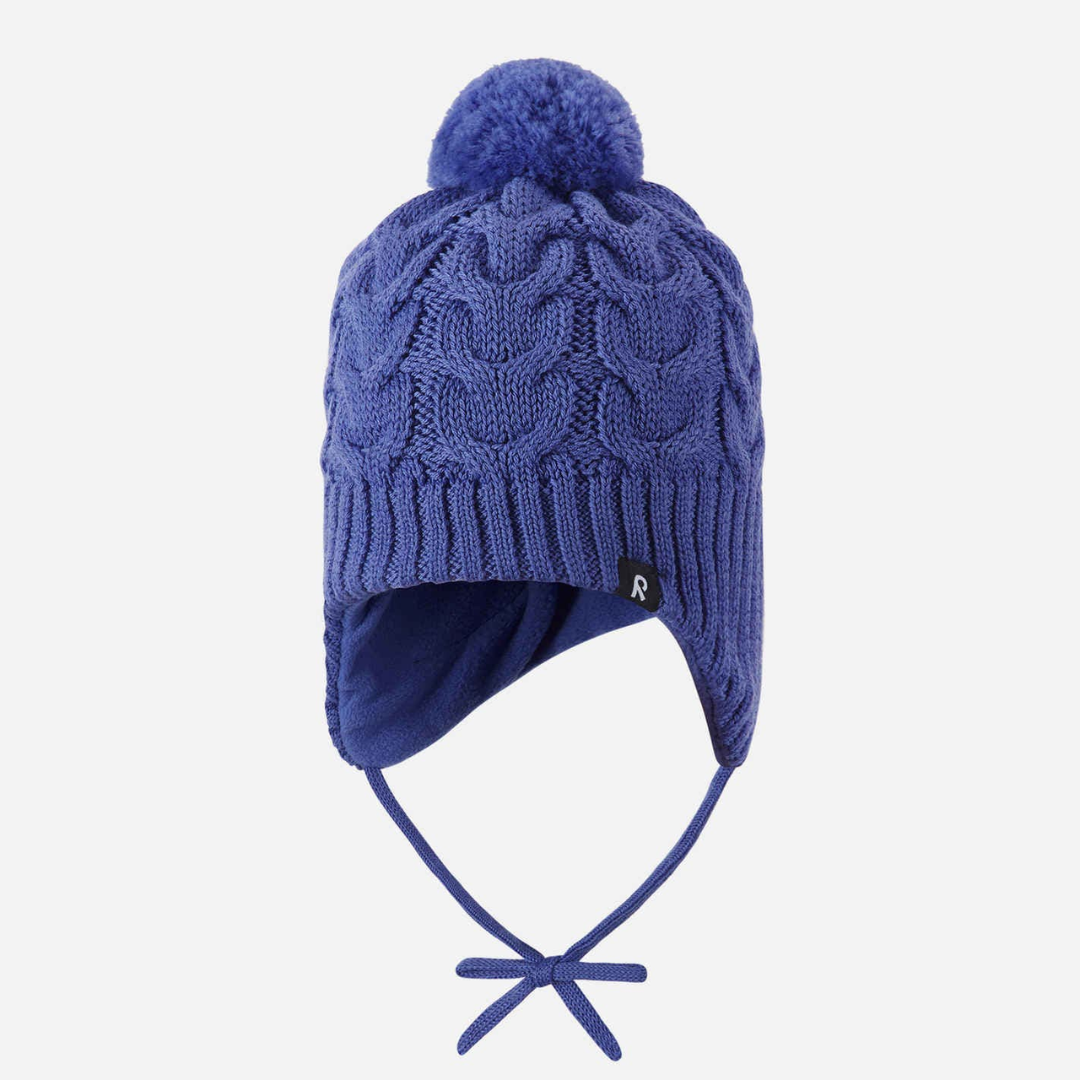 This knitted Reima beanie for toddlers is made from a warm wool-mix knit. It's ideal for keeping little ones warm, thanks to the natural wool. The full fleece lining is warm and feels comfortable, and the windproof coverage at the sides protects little ears.
