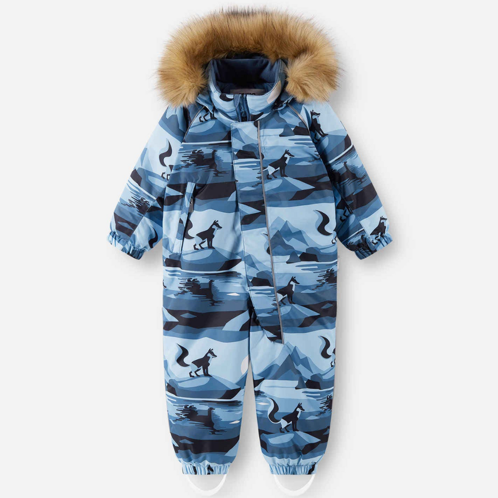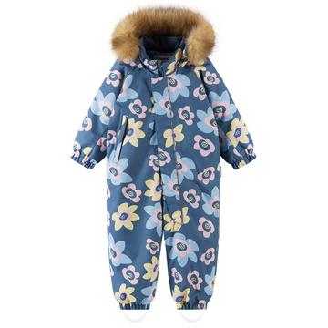This Reimatec Lappi toddlers' winter overall is a test winner! The unbiased Best-in-Test and "Pricerunner" jury in Norway and Denmark chose Reimatec Lappi the nr 1 winter toddler overall of 2021. This toddlers' easy-care snowsuit is ideal for winter fun. The waterproof design is made from a breathable and windproof material that repels dirt. All the seams have been sealed waterproof and the seat is insulated seat to keep bottoms warm and dry during cold-weather adventures. The smooth lining makes dressing easy. The detachable and adjustable hood with detachable faux fur trim is also safe when little ones are playing outdoors, connected with snap buttons, it comes off easily if it gets caught on something. Durable silicone foot loops keep the trousers hems in place, protecting little ankles from moisture and the cold. This tumble-dryer-friendly winter all-in-one is a great choice for crawling in the countryside or strolling in the city!