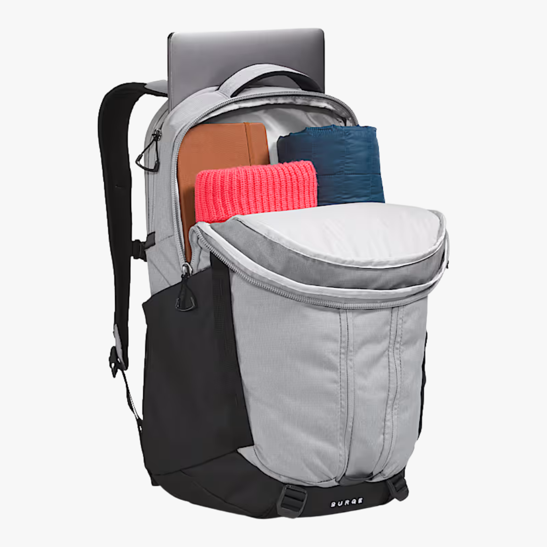 With a 31-liter capacity, the Surge Backpack is a spacious, streamlined pack you can take almost anywhere. Clever design features like a water-repellent finish, 16'' laptop sleeve, and the ability to stand unsupported make it indispensable.
