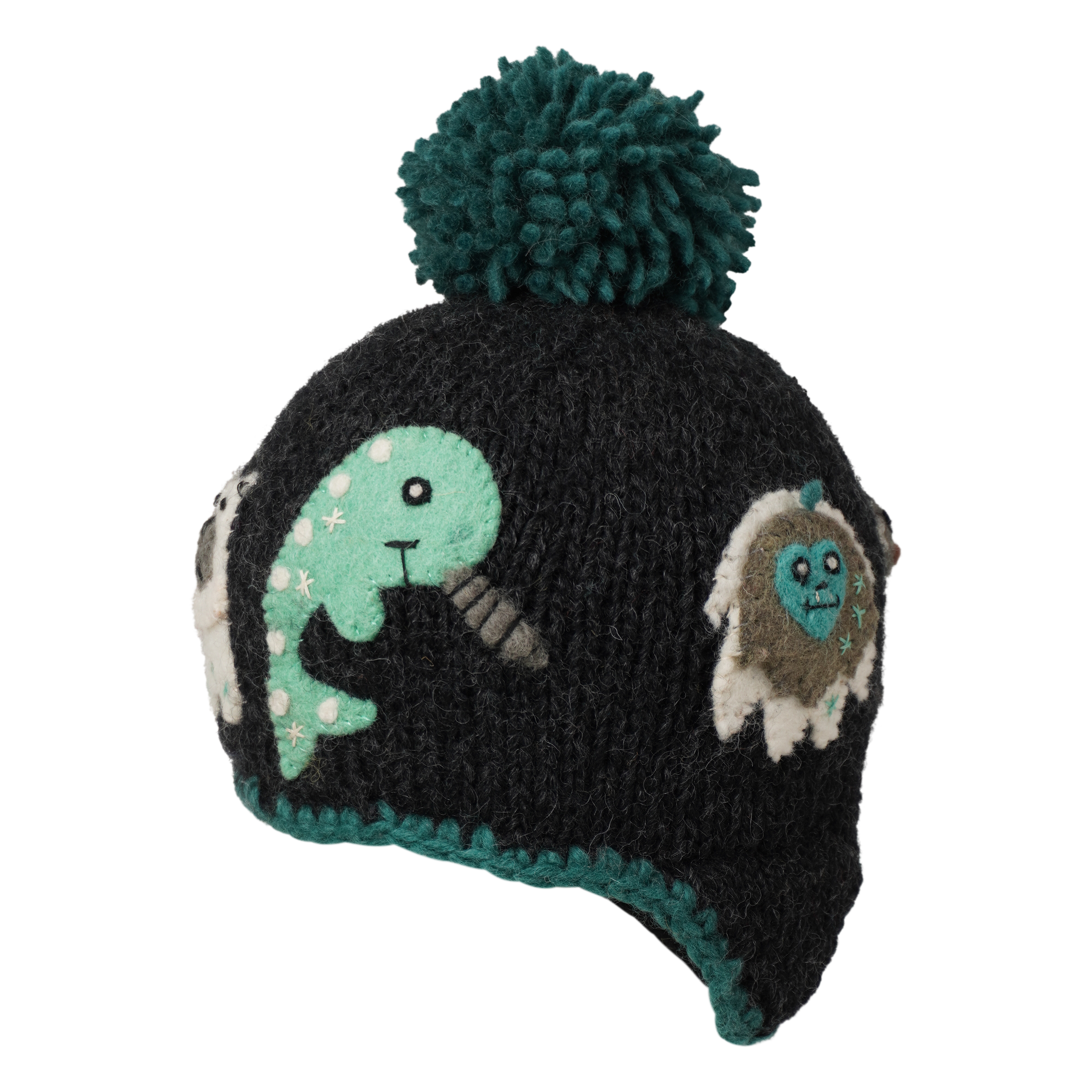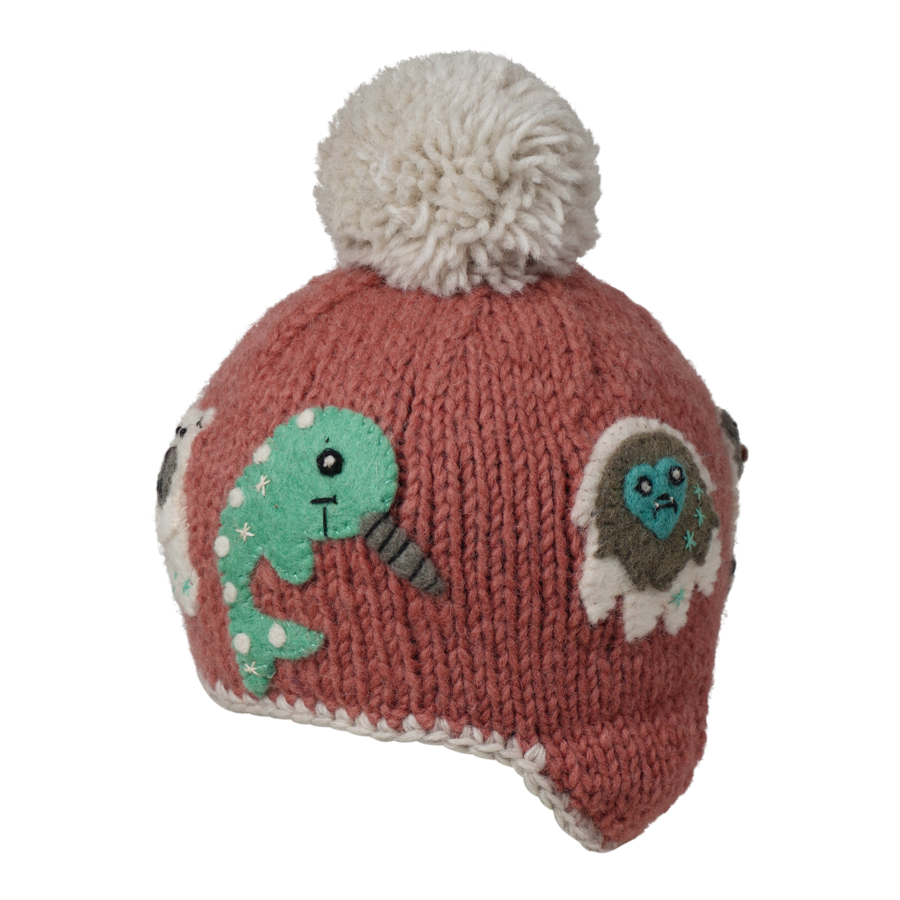 The Yeti features felt and embroidered snowy friends from the great white north. Plus there’re earflaps for extra warmth, a fleece headband to keep things soft and a coordinated pom!